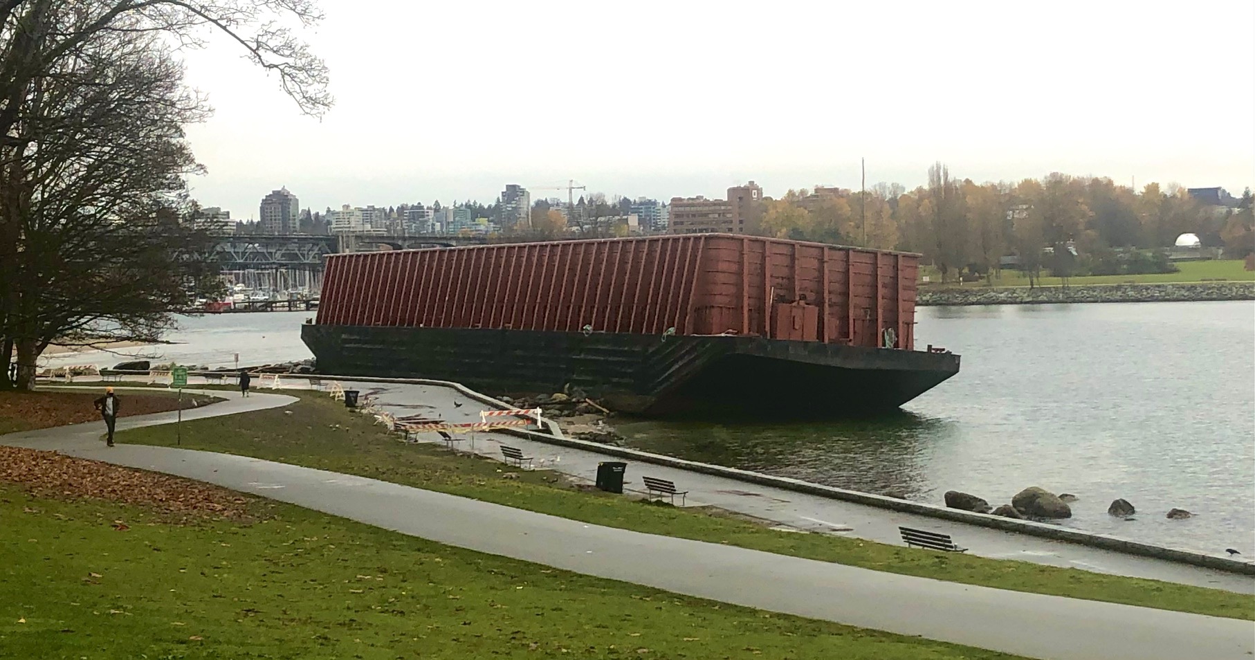 It’s believed a tide that is just five to 10 centimetres higher than 4.5 metres would allow the barge to easily slip back into the water. And federal officials are forecasting an exceptionally high tide of five metres on Dec. 6.